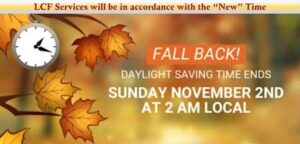 Hello, folks; it’s that time of year again. On Sunday, November 2, 2025 at 2:00am, Daylight Saving Time will end. LCF Services will observe the “new” time for all it’s services…